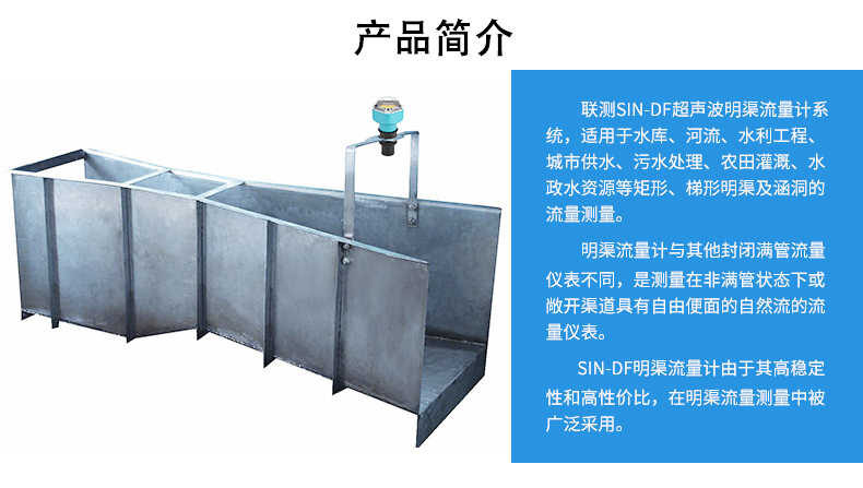超聲波明渠流量計(jì)與量水堰槽配合使用,測(cè)量明渠內(nèi)水的流量。
