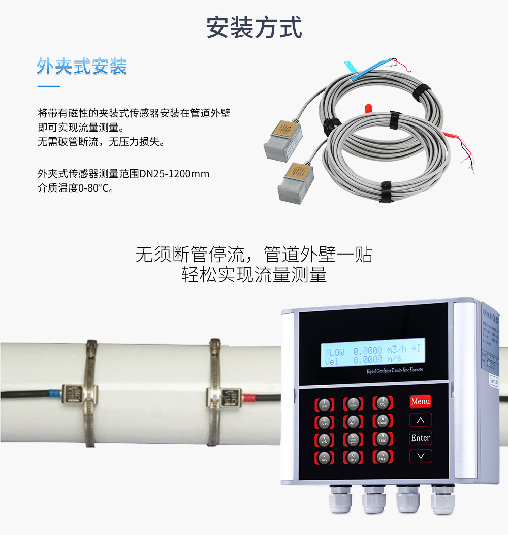 測超聲波流量計適合相對純凈液體流量的管外測量,尤其是在水流量測量、在工業(yè)循環(huán)水、空調(diào)制冷循環(huán)水、原水、高壓水、自來水,污水排放管等廣泛應用。