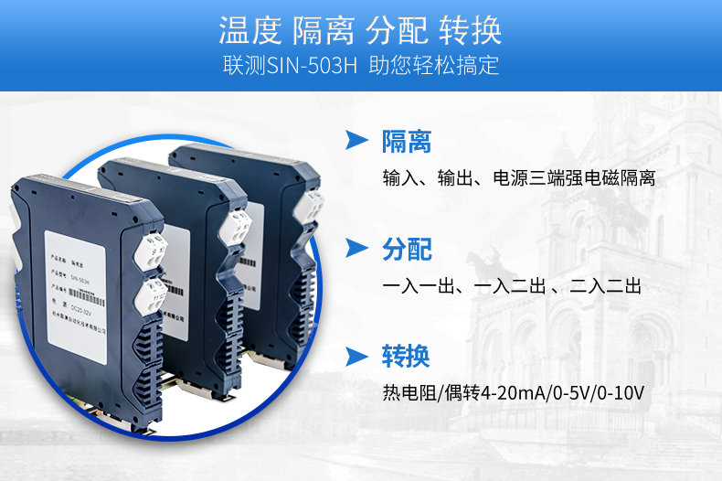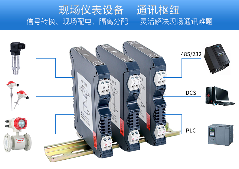 將PT100等熱電阻跟熱電偶信號轉(zhuǎn)換成各種電流、電壓等標(biāo)準(zhǔn)模擬量信號,可以與PC機(jī)、PLC、DCS等實(shí)現(xiàn)工控監(jiān)測連接??垢蓴_能力強(qiáng),遠(yuǎn)傳不受其他設(shè)備影響。輸入、輸出選擇范圍寬,準(zhǔn)確度高。電源可選擇,導(dǎo)軌安裝便于檢測與安裝。廣泛應(yīng)用于各種對溫度集中測量的監(jiān)控系統(tǒng)中。