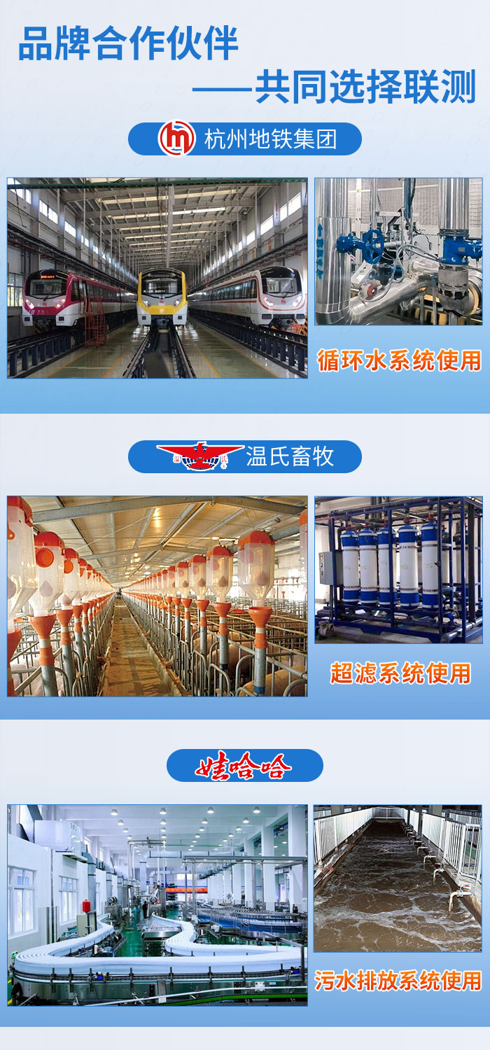 近年來,聯(lián)測儀表廣泛應(yīng)用于各大領(lǐng)域,與國內(nèi)品牌杭州地鐵集團(tuán)、溫氏畜牧、娃哈哈......達(dá)成合作,專業(yè)的技術(shù),敬業(yè)的服務(wù)贏得了諸多企業(yè)的信賴與支持。本次合作也給客戶留下了良好的印象,好評(píng)連連,溫州繞城高速公路有限公司表示,后續(xù)多個(gè)站點(diǎn)會(huì)批量使用我司電磁流量計(jì)。