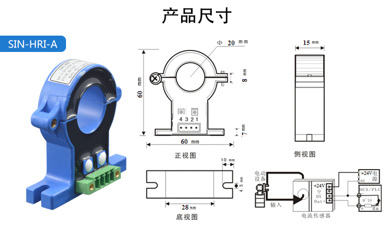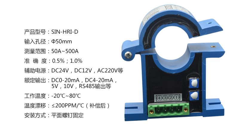 聯(lián)測_開合式霍爾電流變送器_孔徑: 20/22/38....46*180mm_