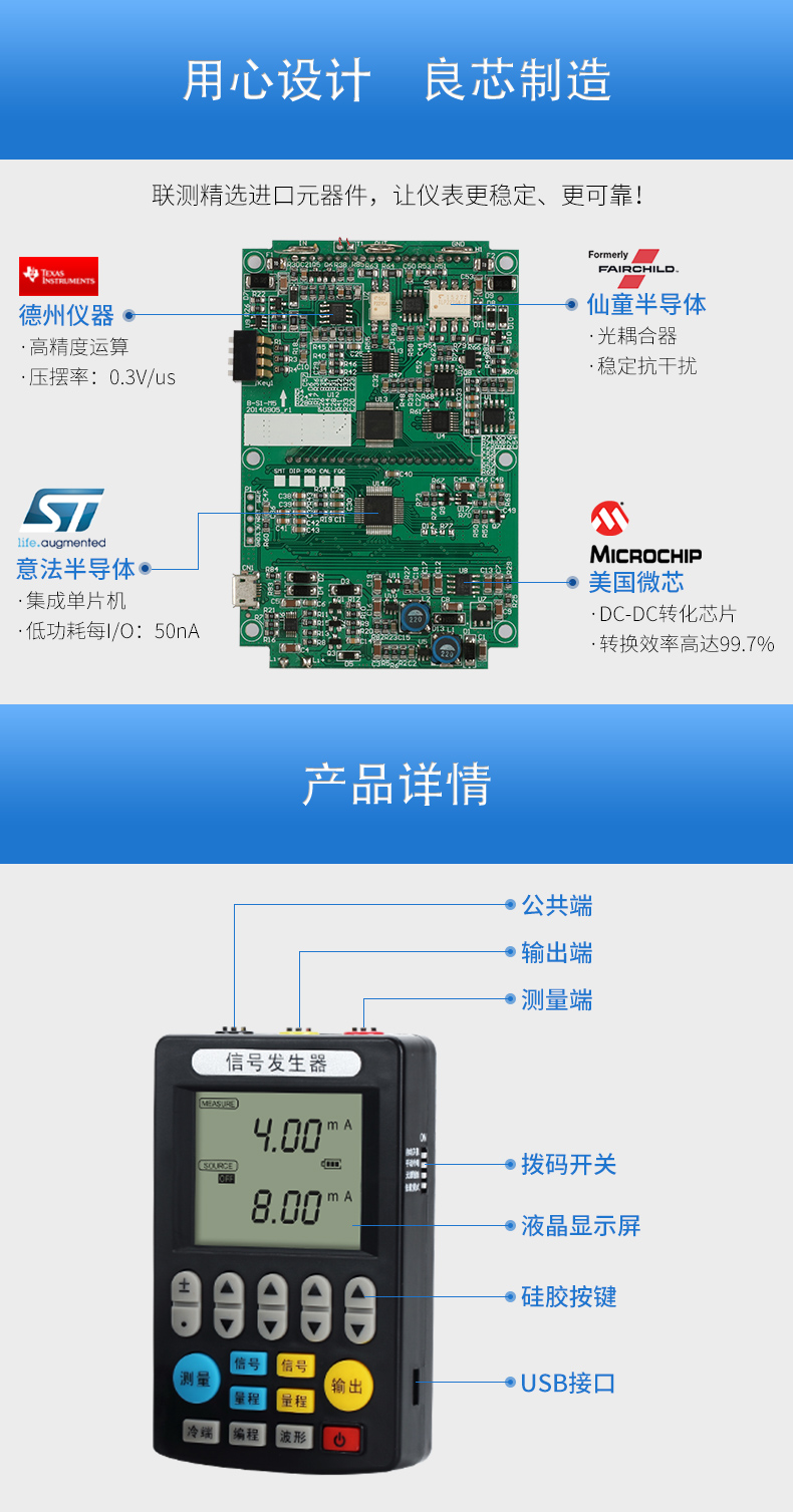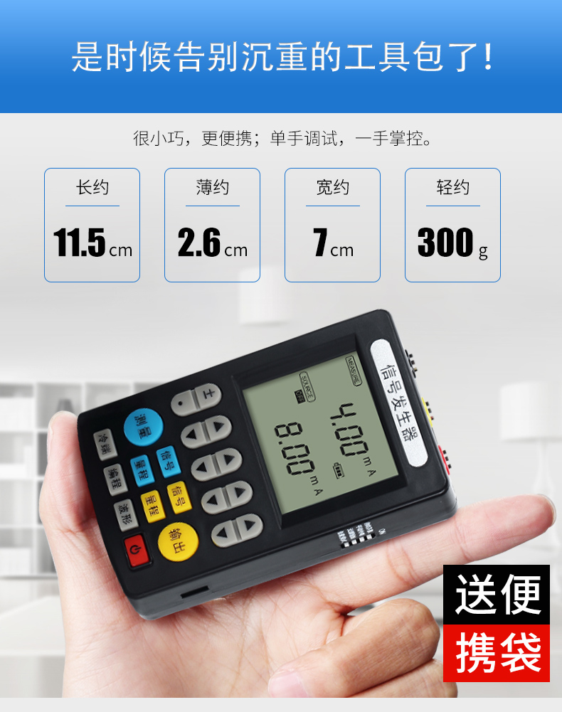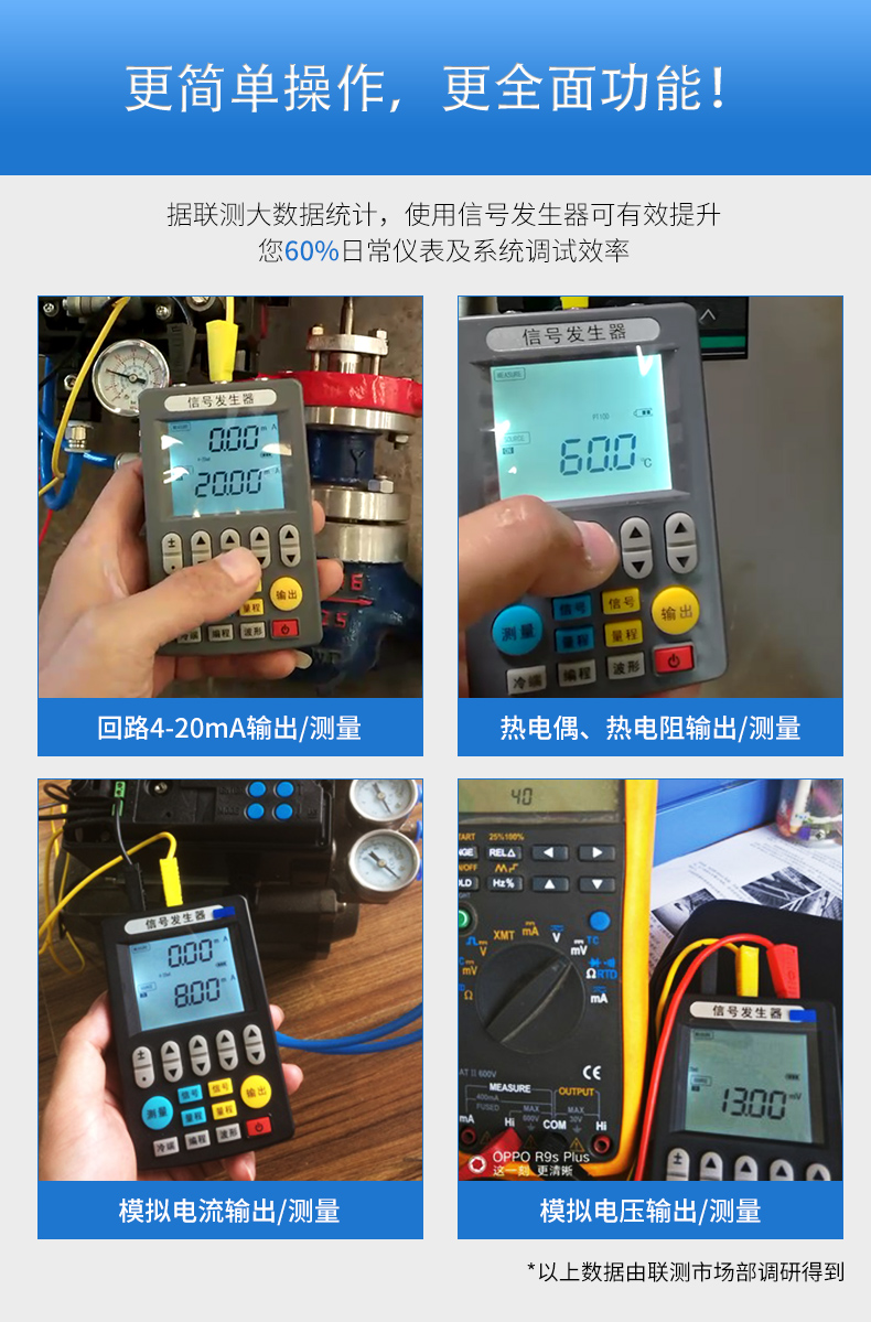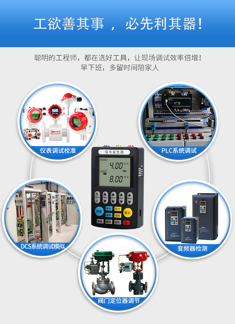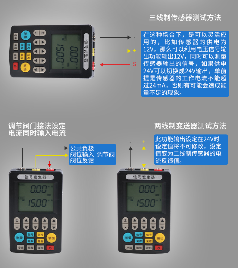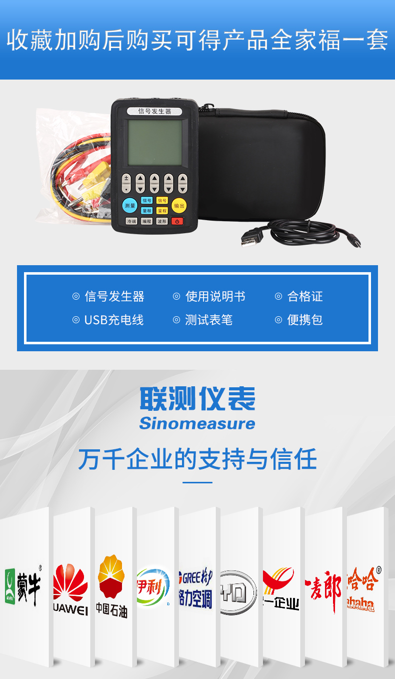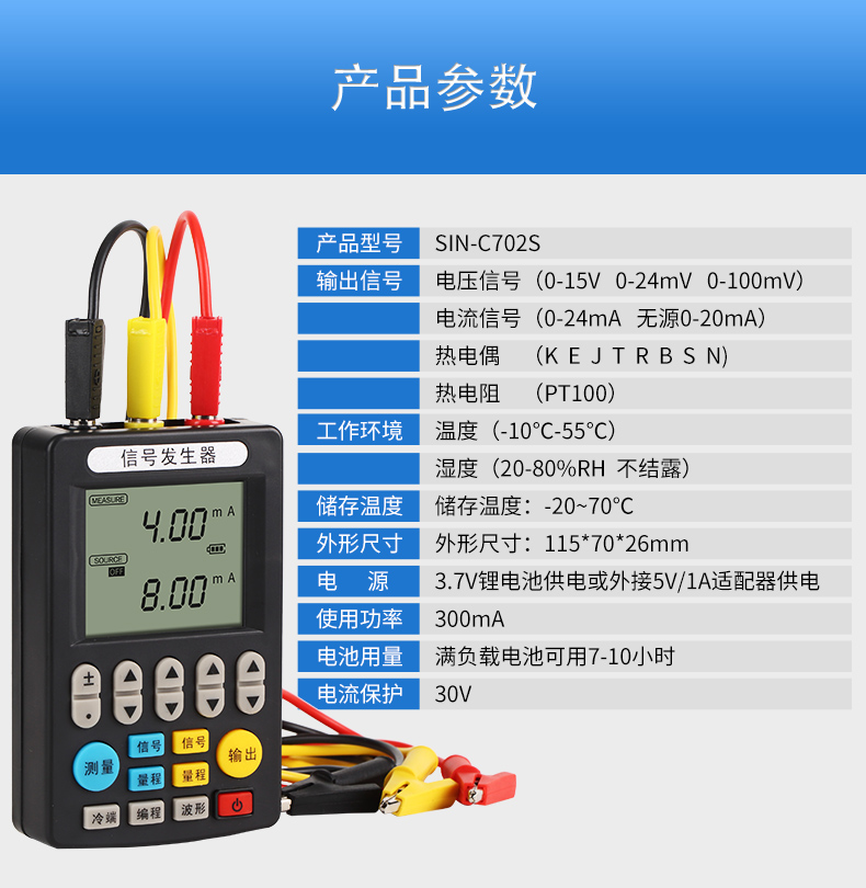 信號(hào)發(fā)生器具有多種信號(hào)的測(cè)量和輸出功能,包括電壓、電流、熱電偶,采用高清LCD液晶屏和功能分明的硅膠按鍵,操作簡(jiǎn)單,待機(jī)時(shí)間長(zhǎng),精度高,并且具有可編程輸出的功能。