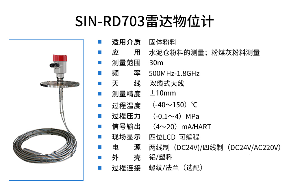 聯(lián)測_SIN-RD703雷達(dá)料位計_適用于水泥倉粉料_