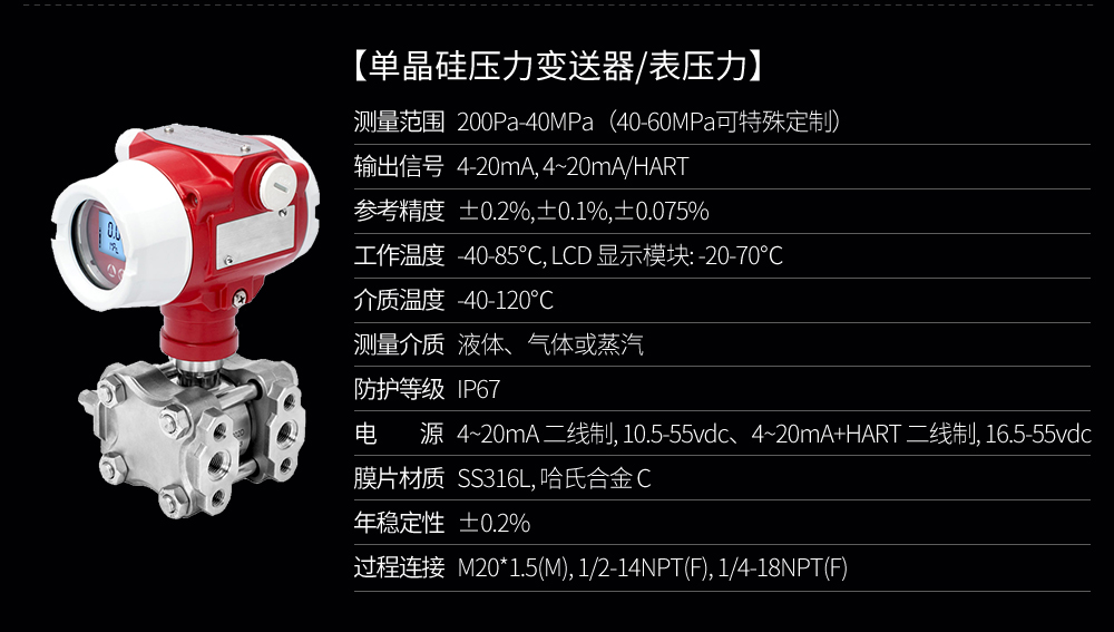 SIN-P3000G單晶硅壓力變送器用于測(cè)量液體、氣體或蒸汽的液位、密度、壓力,然后將其轉(zhuǎn)變成4-20mAHART電流信號(hào)輸出,也可與HART375或BST Modem相互通信,通過他們進(jìn)行參數(shù)設(shè)定、過程控制。與傳統(tǒng)壓力變送器的區(qū)別在于它使用的是納米單晶硅作為傳感器材料。