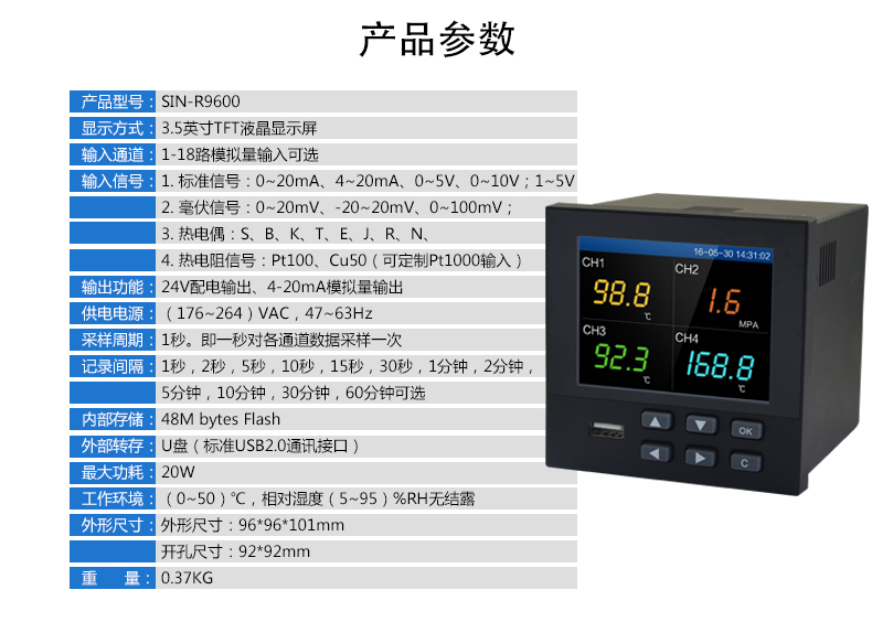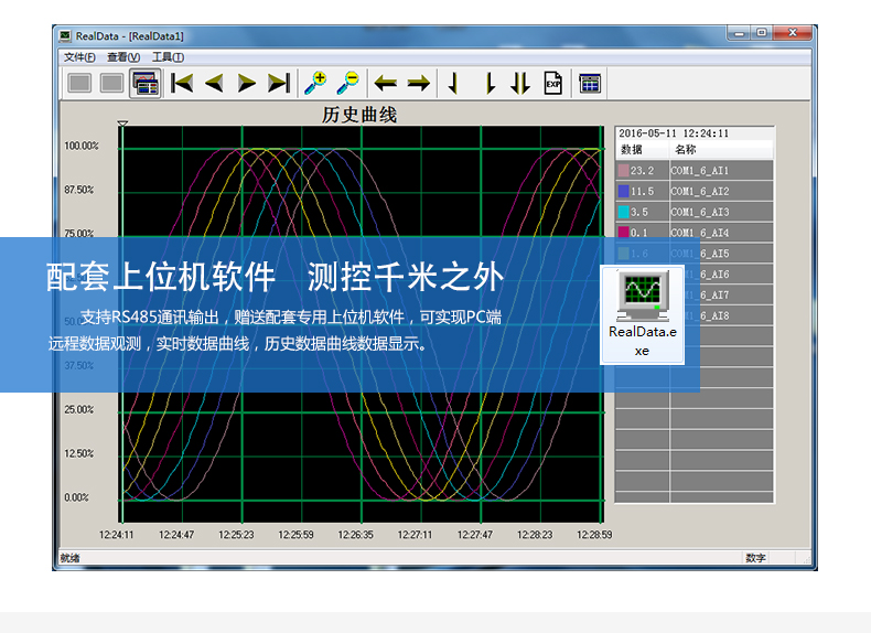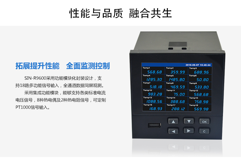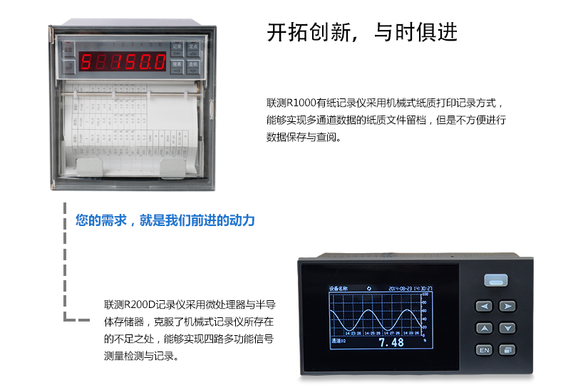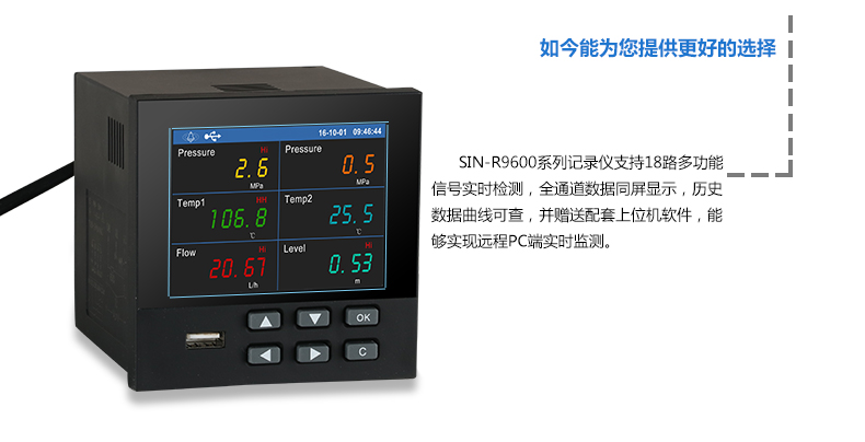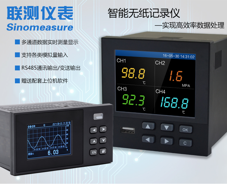 無紙記錄儀是將采集的數(shù)據(jù)/運算數(shù)據(jù)以時間為基軸記錄在儀器內(nèi)部的存儲系統(tǒng)中,無消耗任何常用的記錄設(shè)施,如:紙張、筆墨。記錄在儀器內(nèi)部的存儲數(shù)據(jù),通過運算、模擬后顯示在液晶屏。常用顯示用液晶屏比較廣泛。在液晶屏屏幕上,可以顯示數(shù)字顯示、棒圖顯示、曲線顯示、報警列表等。無紙記錄儀采集的數(shù)據(jù),常用的有:溫度、壓力、流量、液位、電壓、電流、濕度、頻率、振動、轉(zhuǎn)速等。