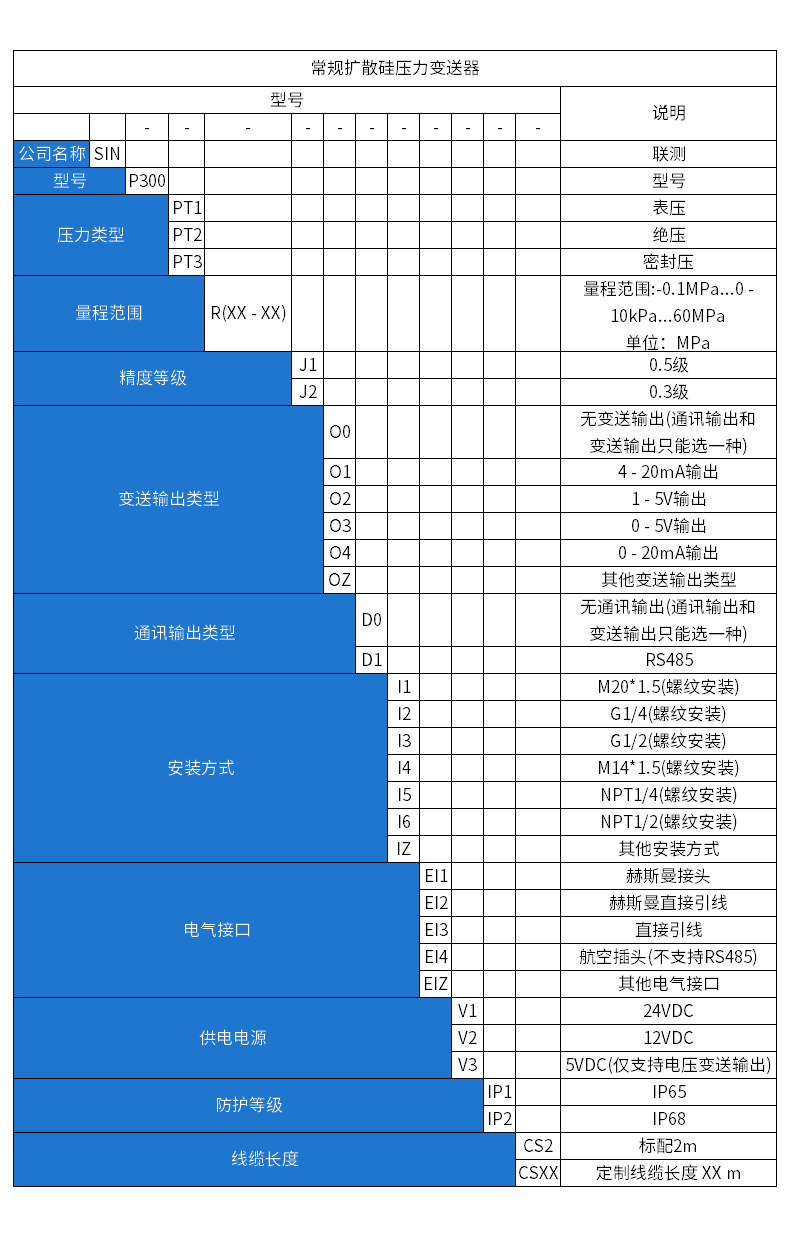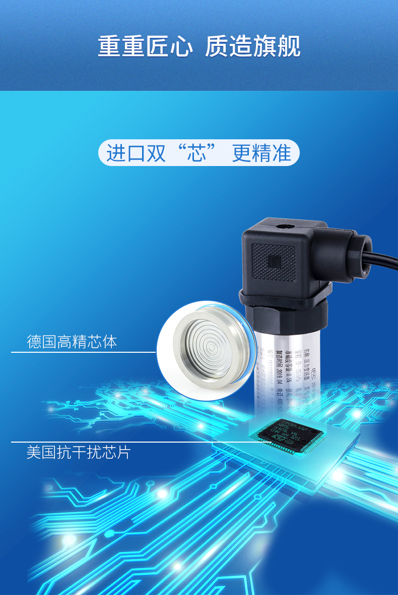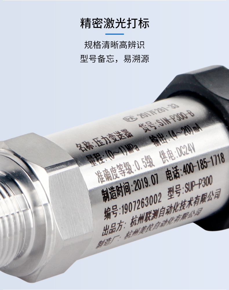 SIN-P300通用型壓力變送器德國進口硅芯片,精度高性能穩(wěn)定;SIN-P300型通用型壓力變送器采用擴散硅壓力芯體作為敏感元件,內(nèi)置處理電路將傳感器毫伏信號轉換成標準電壓﹑電流信號輸出,可直接與計算機、控制儀表﹑顯示儀表等相連。選用高穩(wěn)定性和高可靠性的壓阻式壓力傳感器和高性能的變送器專用電路,整體性能穩(wěn)定可靠,可進行遠距離信號傳輸。采用一體化全不銹鋼結構,經(jīng)過多次不銹鋼焊接,實現(xiàn)了全固態(tài)設計,安裝方便,具有高抗振性和抗沖擊性,在惡劣環(huán)境中可以長期使用。廣泛應用于工業(yè)自動化設備配套以及石油、化工、冶金、電力等控制領域。